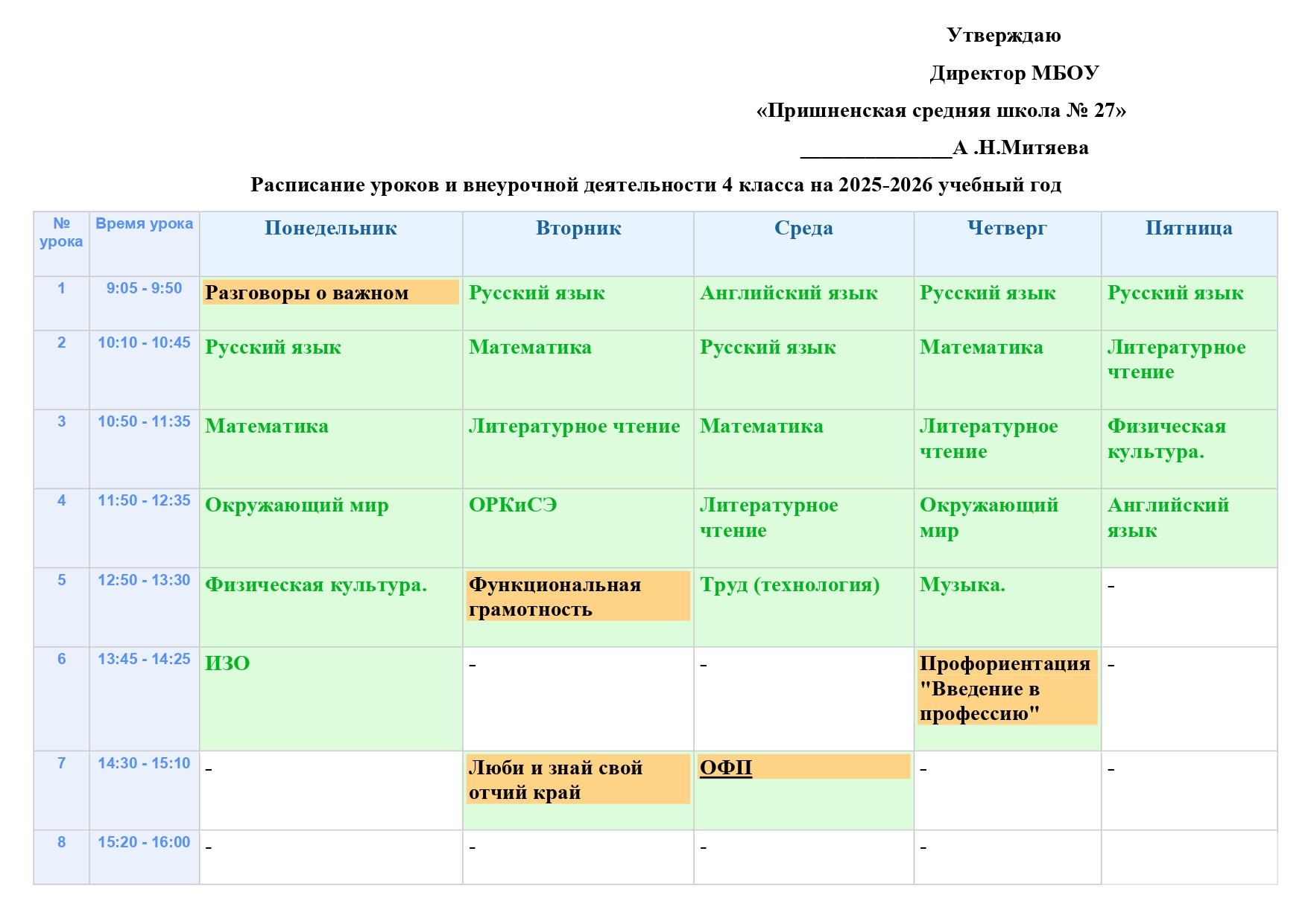 Расписание уроков и внеурочной деятельности на 2025-2026 учебный год