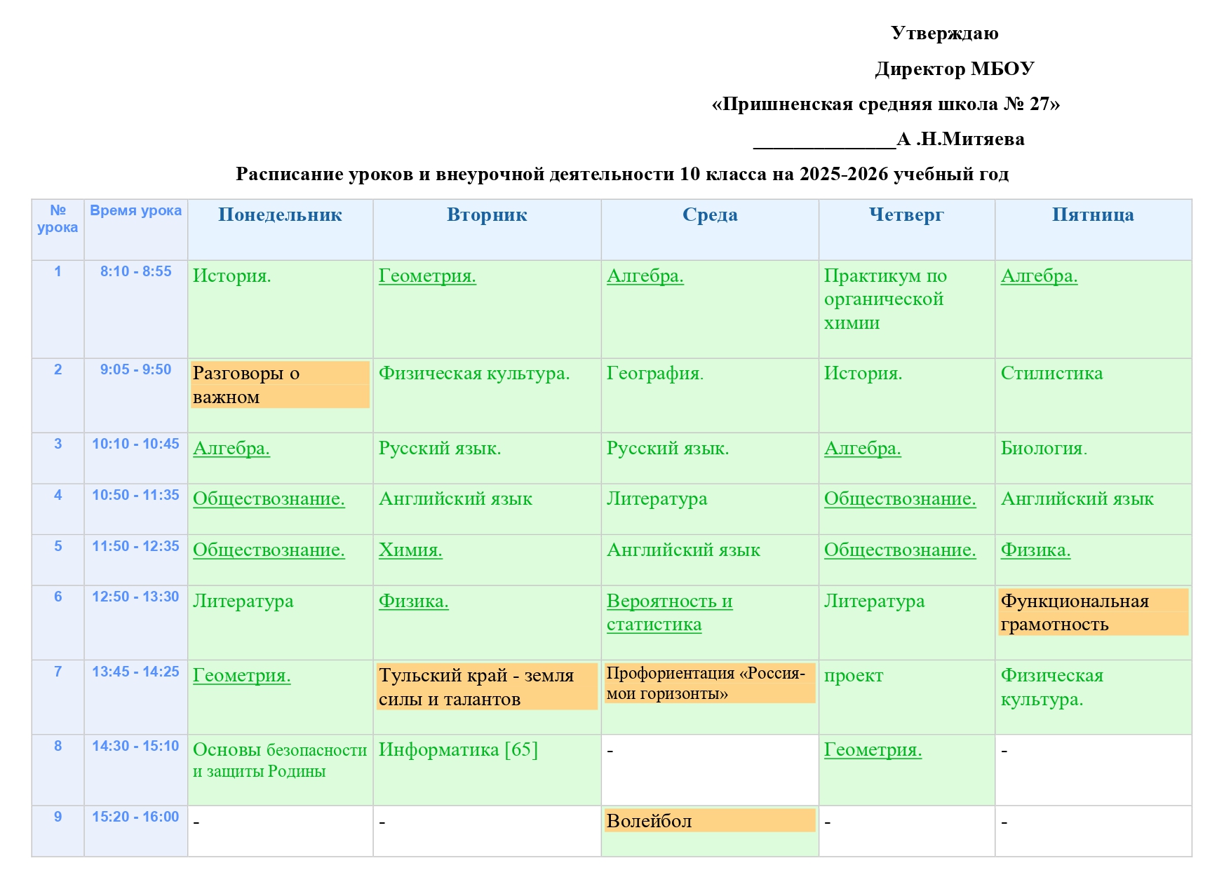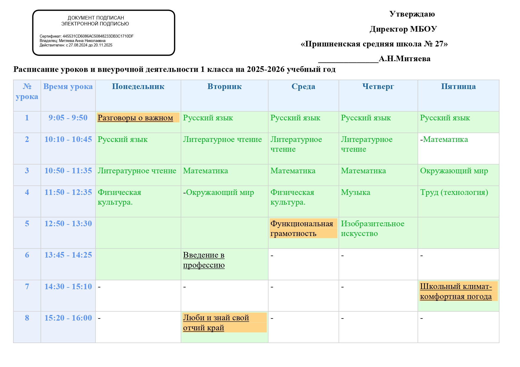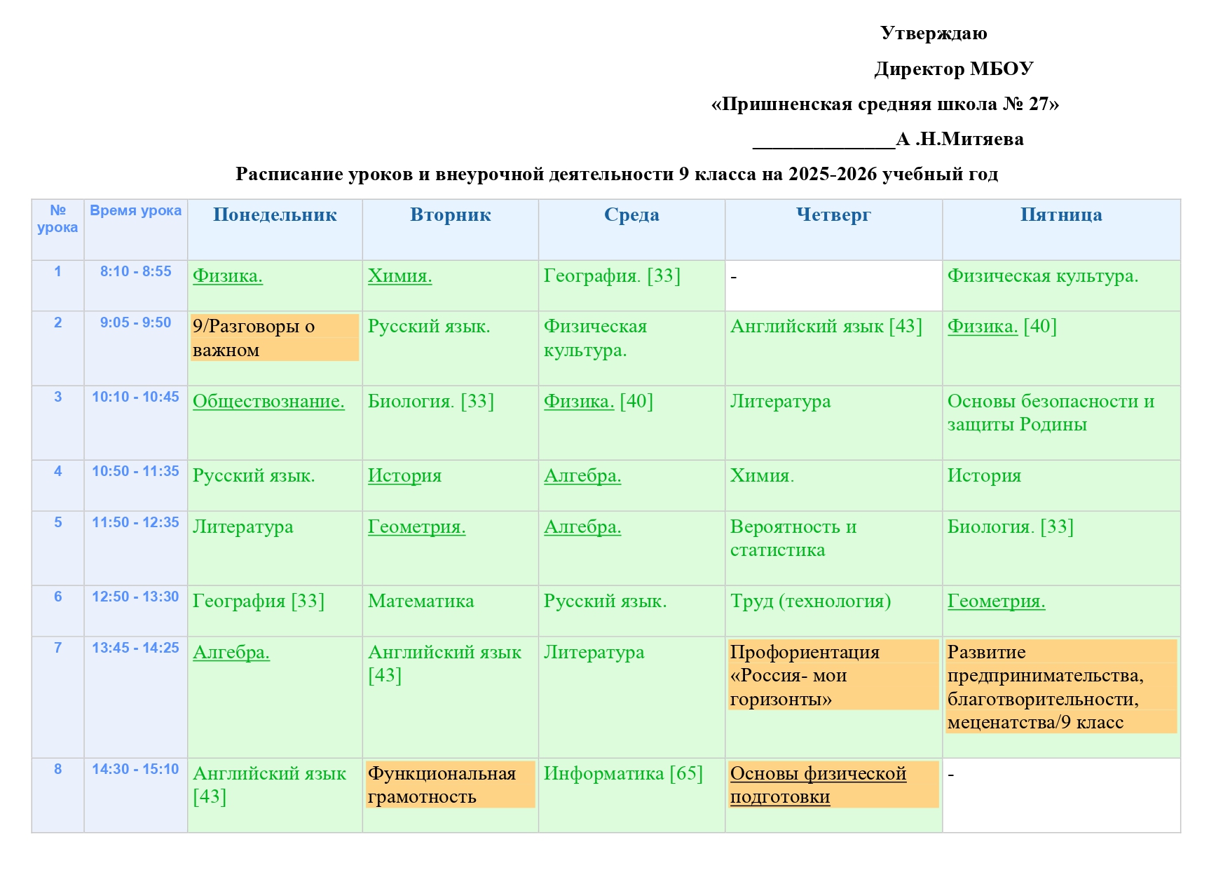 Расписание уроков и внеурочной деятельности на 2025-2026 учебный год (скачать)